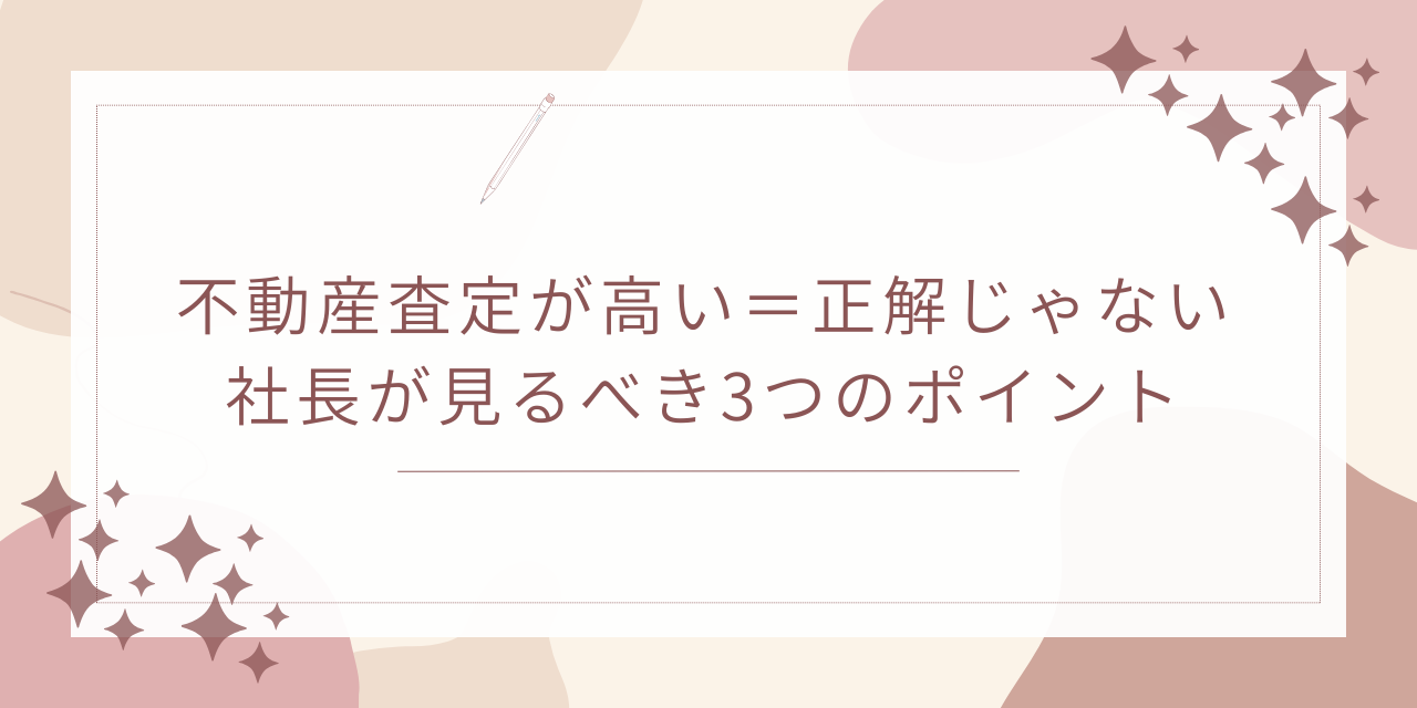 不動産の査定額が想像より高いと、うれしい反面「本当にこの金額で売れるのか」と不安になることがあります。この記事では、高い査定額そのものではなく、その金額で決まる筋道を見るべきという視点で、社長が確認したいポイントを3つに整理しています。